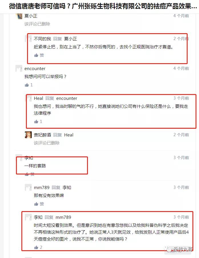 有匿名用户发现这种“xx顾问”的营销方式是张砾生物科技的惯用伎俩,微信加为好友后,利用购买者祛痘心切的心理,以夸张的方式鼓吹产品的功效,一步一步套取用户的钱财。最后皮肤没有护理好,反而蒙受不必要的损失。